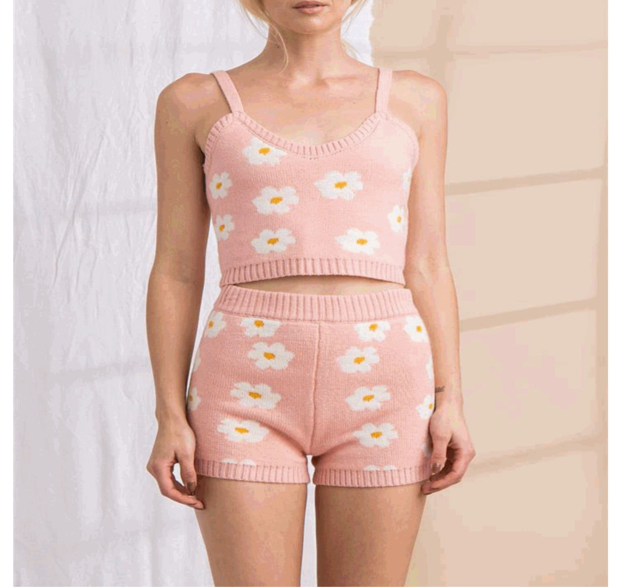 Pink/white/yellow, flower pattern cami crop top and shorts lounge set